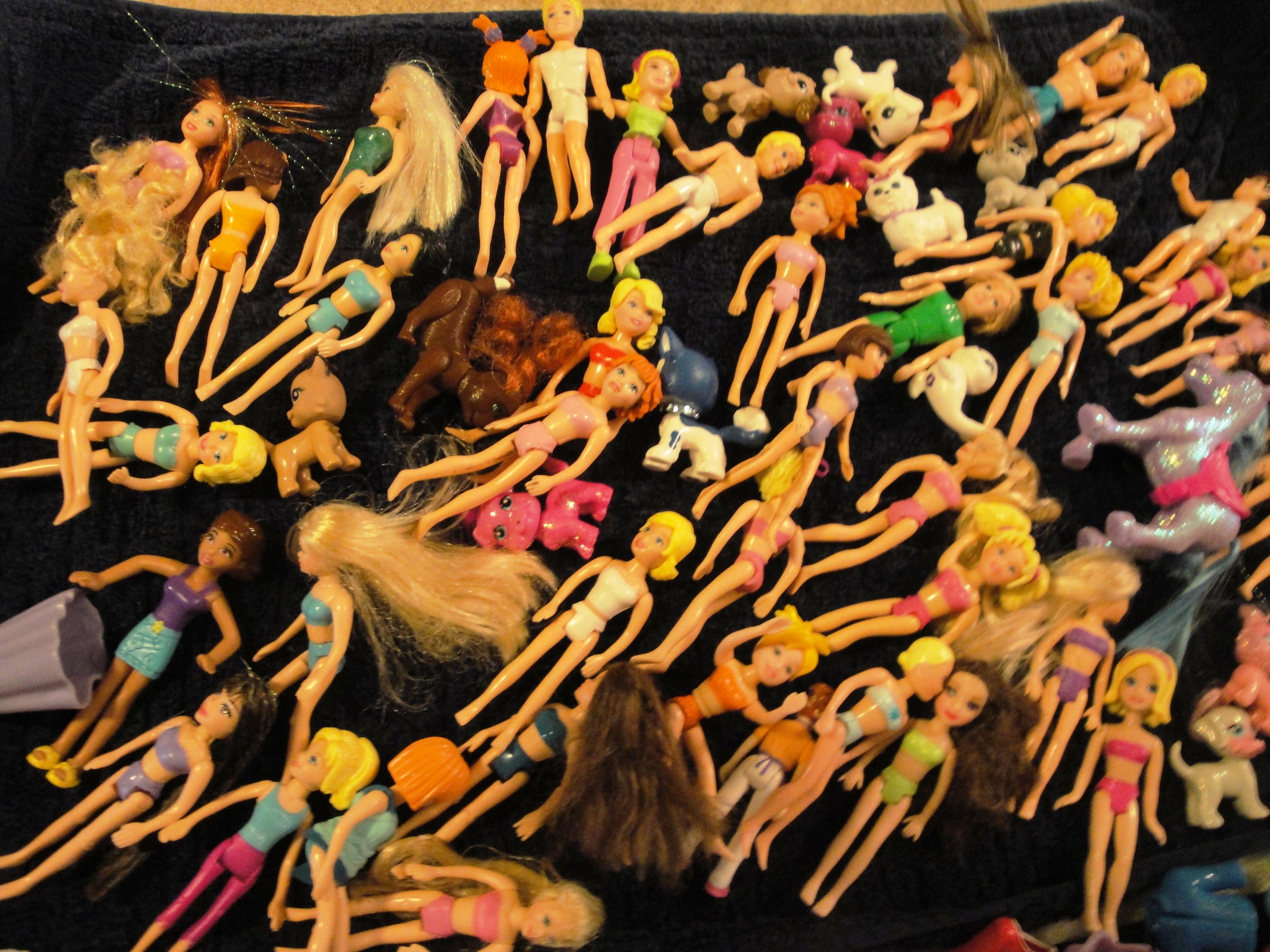 Someday our grandaughter, Carmen, will get to play with the army of Polly Pockets her excited grandfather (abuelito) brought home from a yard sale! She isn’t born yet and the hundreds of rubber clothes and shoes are so tiny she will have to wait until she’s old enough not to swallow toys before she can play with them. But they are safely stored away, all cleaned up and sorted, waiting for her little hands and big imagination…or any other grandchildrens’, to discover them and play with them for countless hours.