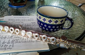 The image shown above depicts some of the tools in my tool bag helping me recently to cope and to grow in trying times. Playing the flute helps me tremendously because of the breathing involved and the state of relaxation required to bring forth a good tone in the music I play. Sometimes a song is inspired and I try to bring it to life by writing it down. When I play it is always helpful to have a cup of coffee nearby and especially in a favorite blue cup that lifts my spirit along with the music and the caffeine. Sometimes the music that helps me the most is to play favorite hymns and pray as I play.